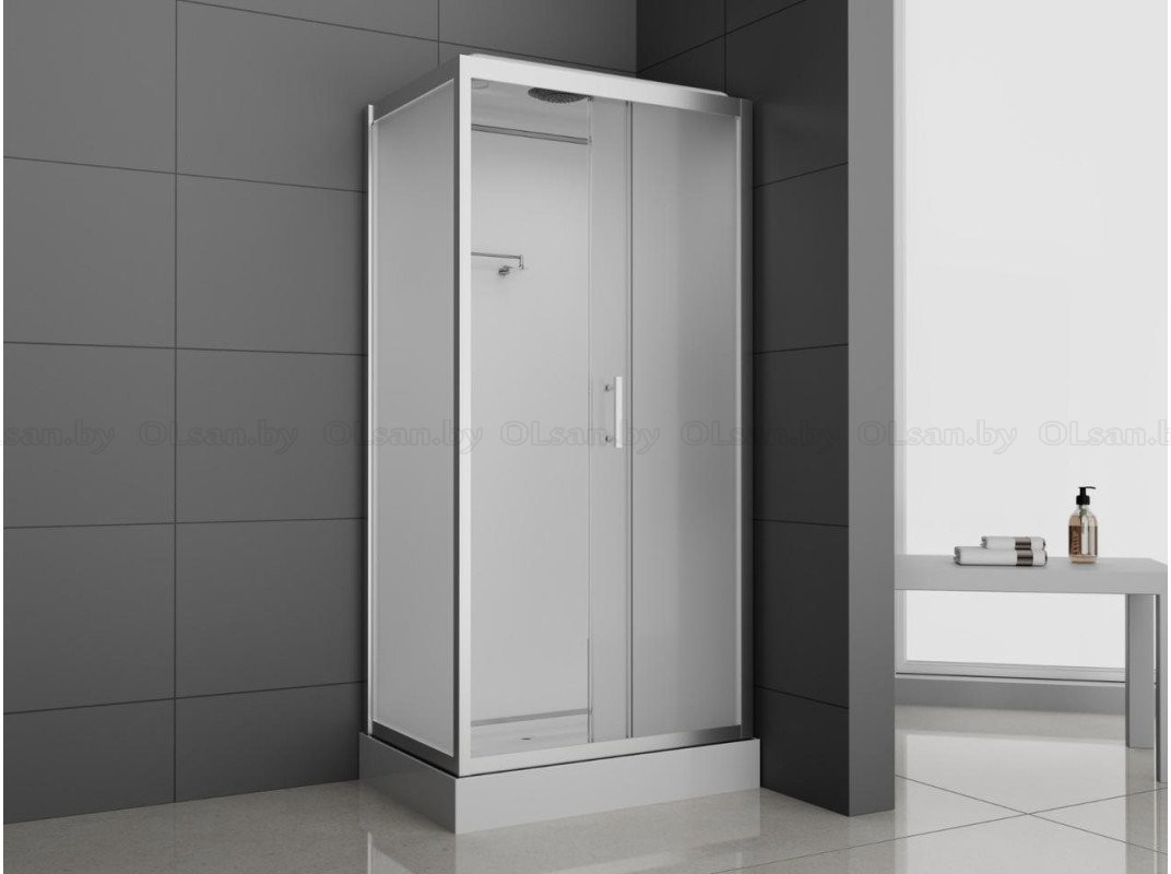 Размер: 120х80х215 см. Усиленный акриловый поддон. Профиль - хром, алюминиевый; Конструкция дверей – Раздвижные; Материал и толщина стекла, мм – 4; Цвет стекла – матовый; Задние стенки, материал и толщина стекла - Окрашенное каленое белое стекло 4 мм; Комплектация: С крышей; Тропический душ; Душевой гарнитур; Механический смеситель; Полочка для душевых принадлежностей; Низкий поддон; Сифон.