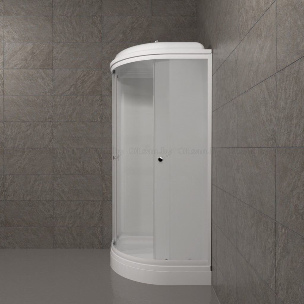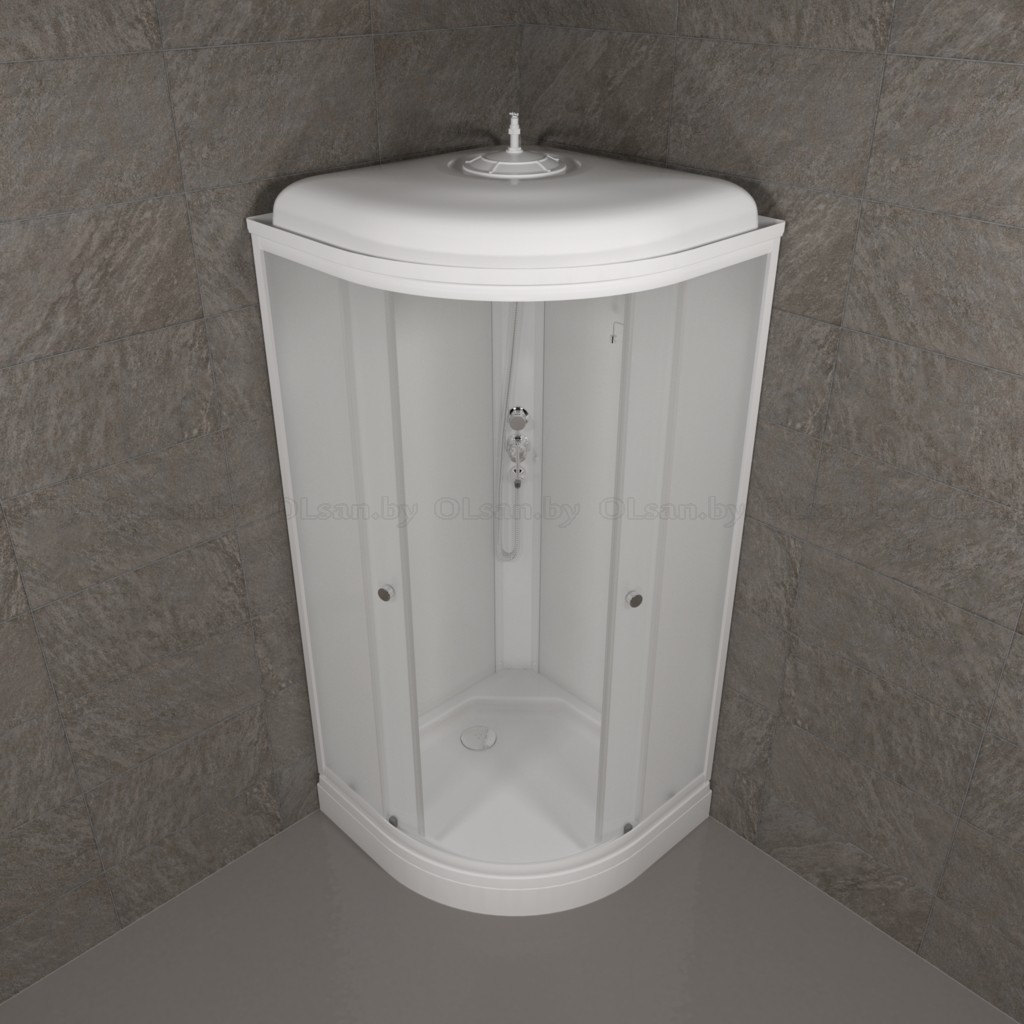 В комплекте: Поддон душевой со съемным экраном; Каркас для поддона стальной; Передние стекла; Передние двери; Комплект направляющих; Задние стенки; Центральная душевая панель; Крыша; Смеситель с лейкой и тропическим душем; Сифон; Сборочный комплект. Высота экрана поддона 130 мм; сифон душевой кабины 50 мм (click-clack); ширина дверного проёма 570 мм; рисунок стекол матовое.