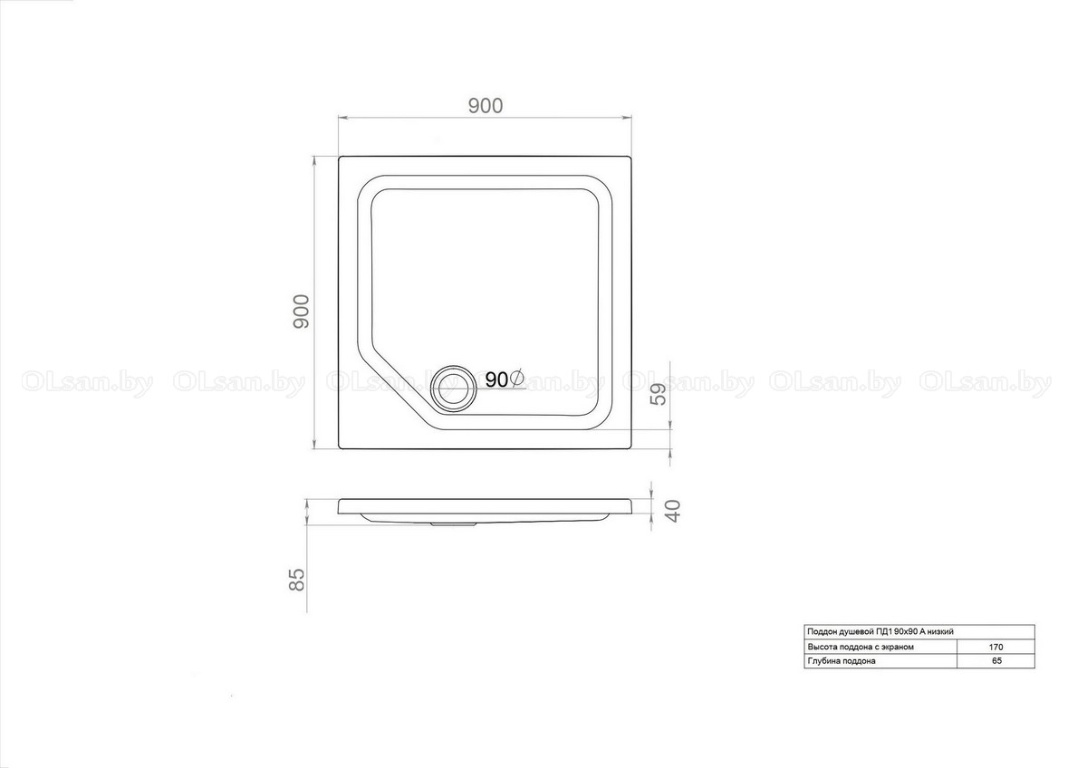 В комплекте: Поддон душевой; Стальной каркас; Монтажная фурнитура; Экран. Высота поддона: 170 мм. Высота экрана поддона: 130 мм. Глубина поддона: 65 мм. Диаметр слива: 90 мм.