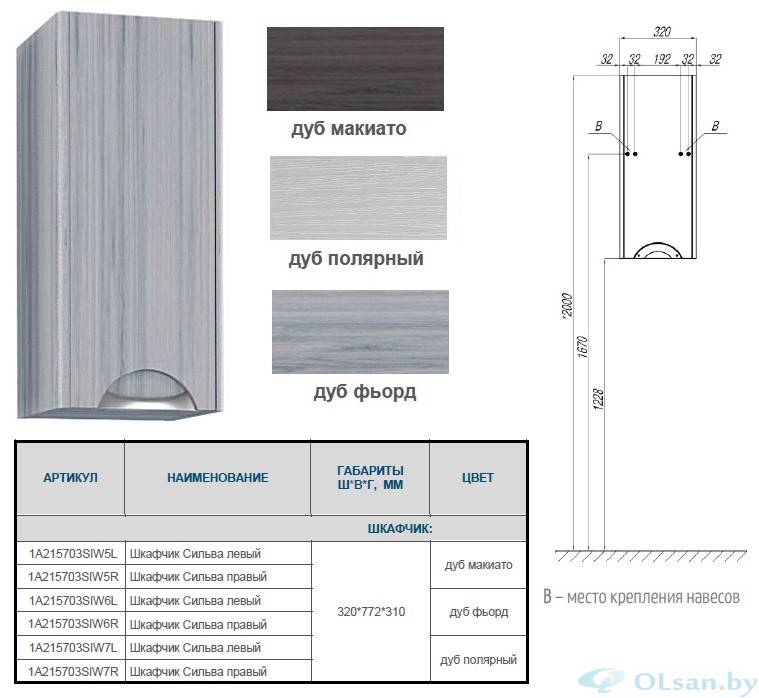 Комплектация: регулируемые полки - 2, полкодержатели - 8, навесы - 2. 1A215703SIW5L - левый, 1A215703SIW5R - правый.