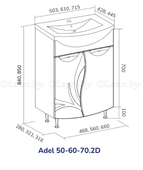 Тумба напольная VOLNA Adel 50.2D с умывальником Ладога