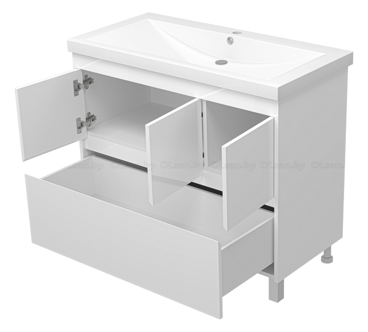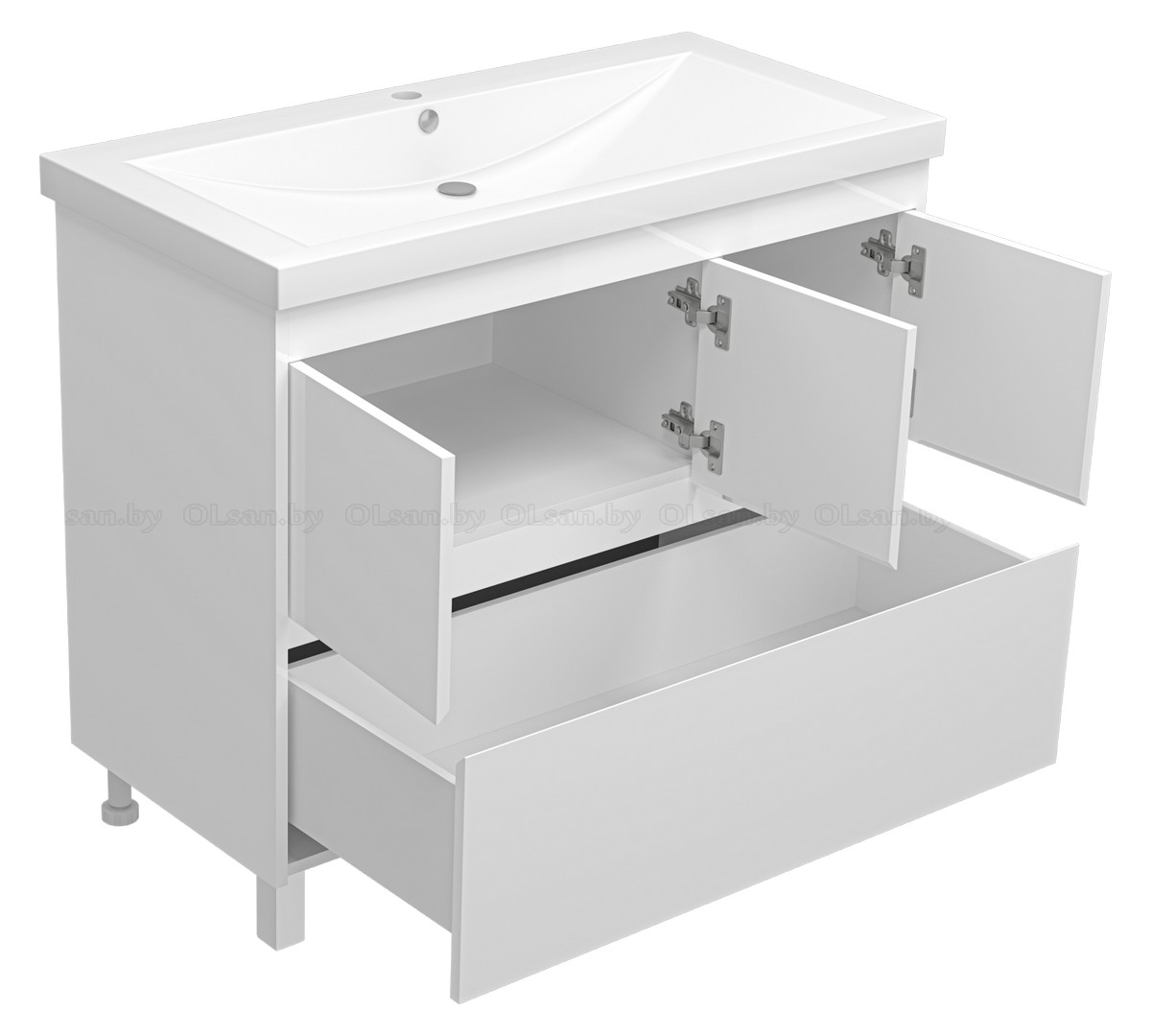 За дополнительную плату комплектуется раковиной Florentina Анита 100. Цвет мебели: белый; Монтаж: напольный; Система хранения: с дверцами, с ящиками; Петли: с доводчиком; Направляющие: с доводчиком, скрытого монтажа; Крепление: подвесы 2 шт., шуруп с Г-образным крючком 2 шт. Материал фасада: МДФ; Покрытие фасада: глянцевое, эмаль; Материал корпуса: ЛДСП; Покрытие корпуса: глянцевое, эмаль; Опоры: передняя регулируемая опора 2 шт., задняя регулируемая опора 2 шт.