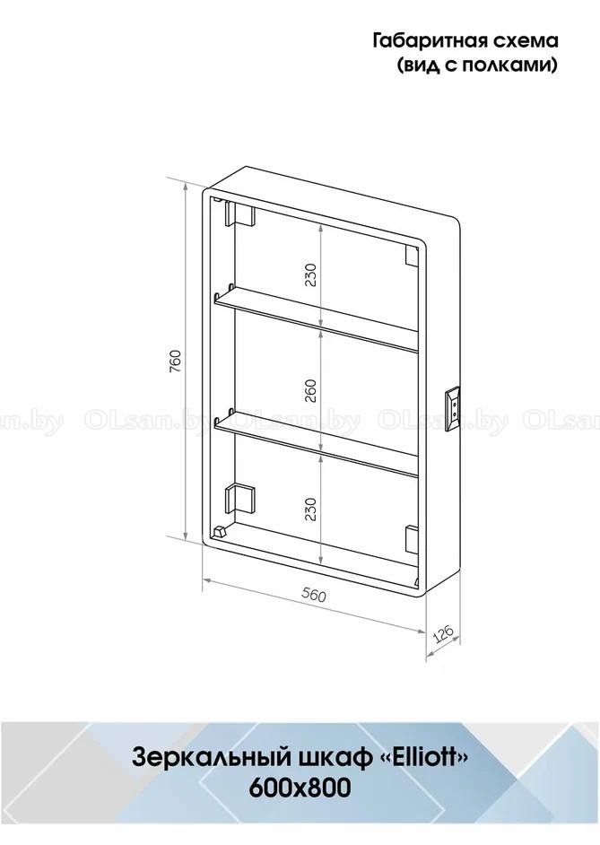 Размер: 600*800 мм. Материал корпуса: МДФ, пленка ПВХ. Материал полок: стекло. Температура свечения LED: 6000K. Тип светодиодов: 2835(120). Электропитание: 220V/50Hz. Стандартная комплектация: LED подсветка; сенсорное управление; розетка для электроприборов мощностью 2 кВт.