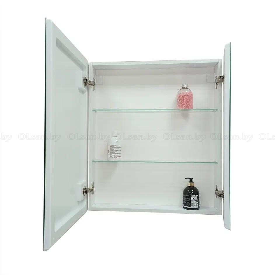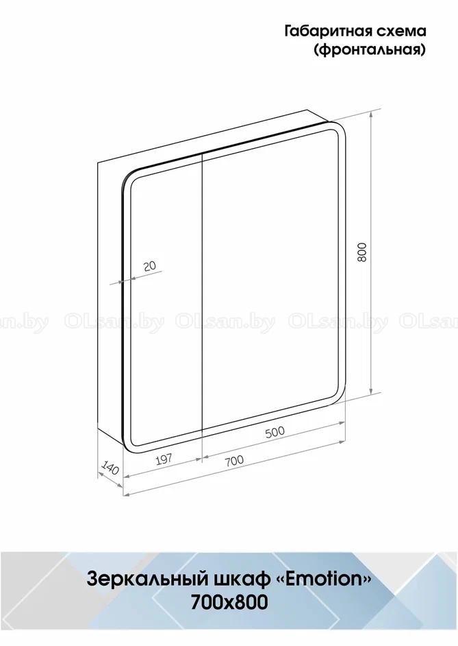 Размер: 700*800 мм. Материал корпуса: влагостойкий ЛДСП. Материал фасада: пластик. Материал полок: стекло. Фурнитура: с доводчиком. Температура свечения LED: 6000K. Тип светодиодов: 2835(120). Электропитание: 220V/50Hz. Стандартная комплектация: LED подсветка; датчик движения на взмах руки; левая и правая дверки шкафа могут меняться местами.