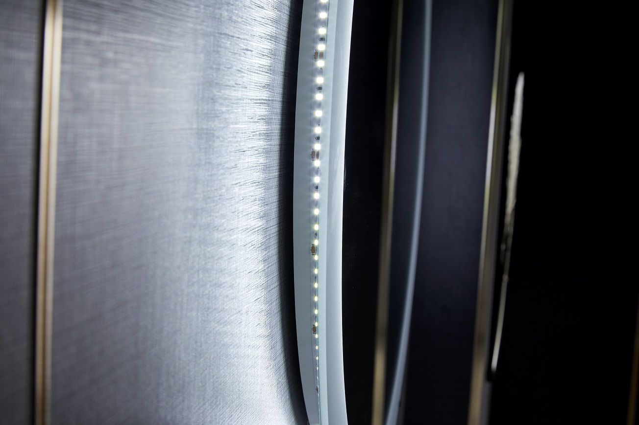 В отличие от аналогичных моделей, в зеркалах Roxen используется светодиодная лента LED Stripe - 120 диодов на 1 метр, которая обеспечивает мягкое равномерное свечение по всему периметру изделия и позволяет использовать его не только как яркий интерьерный элемент, но и как дополнительный источник освещения комнаты.
