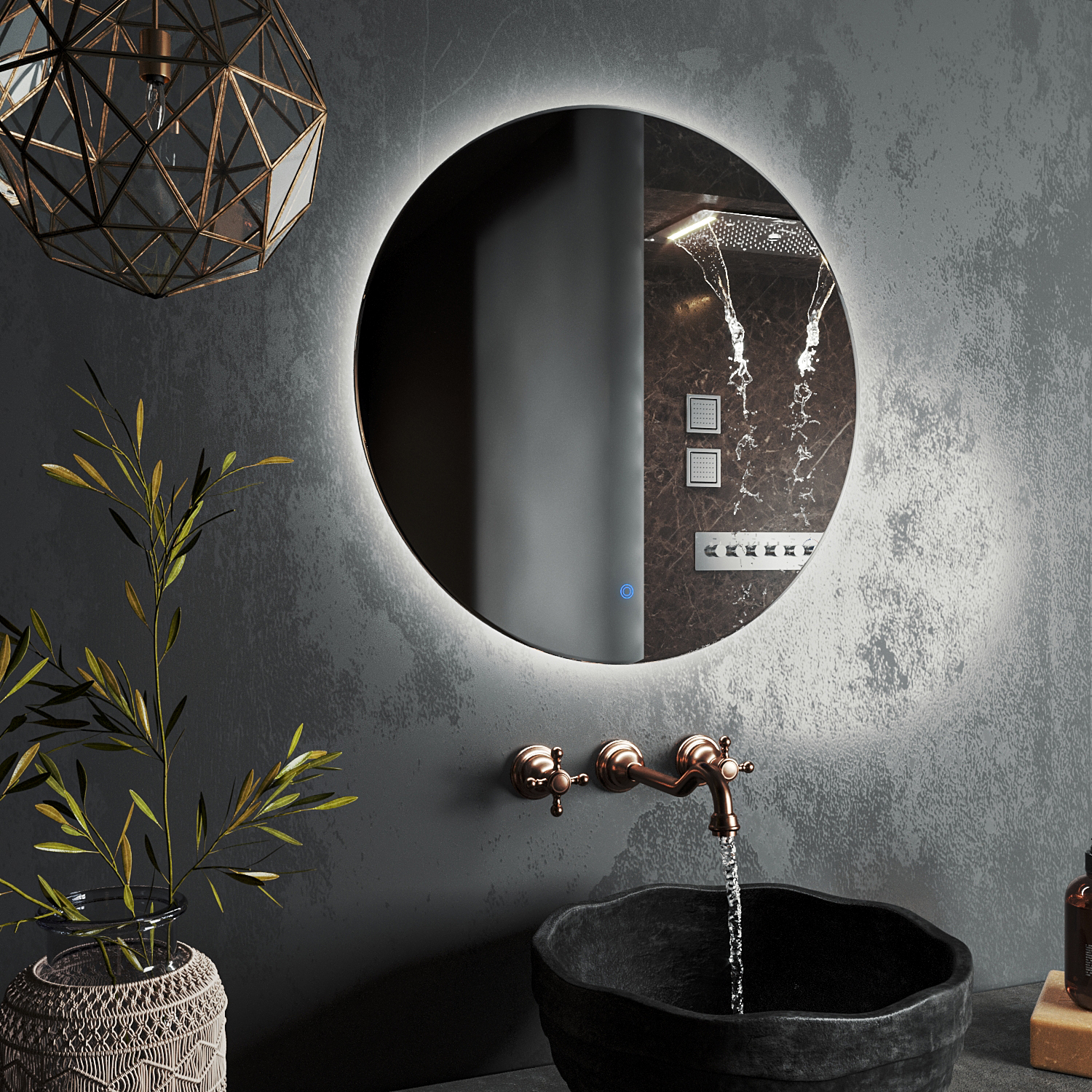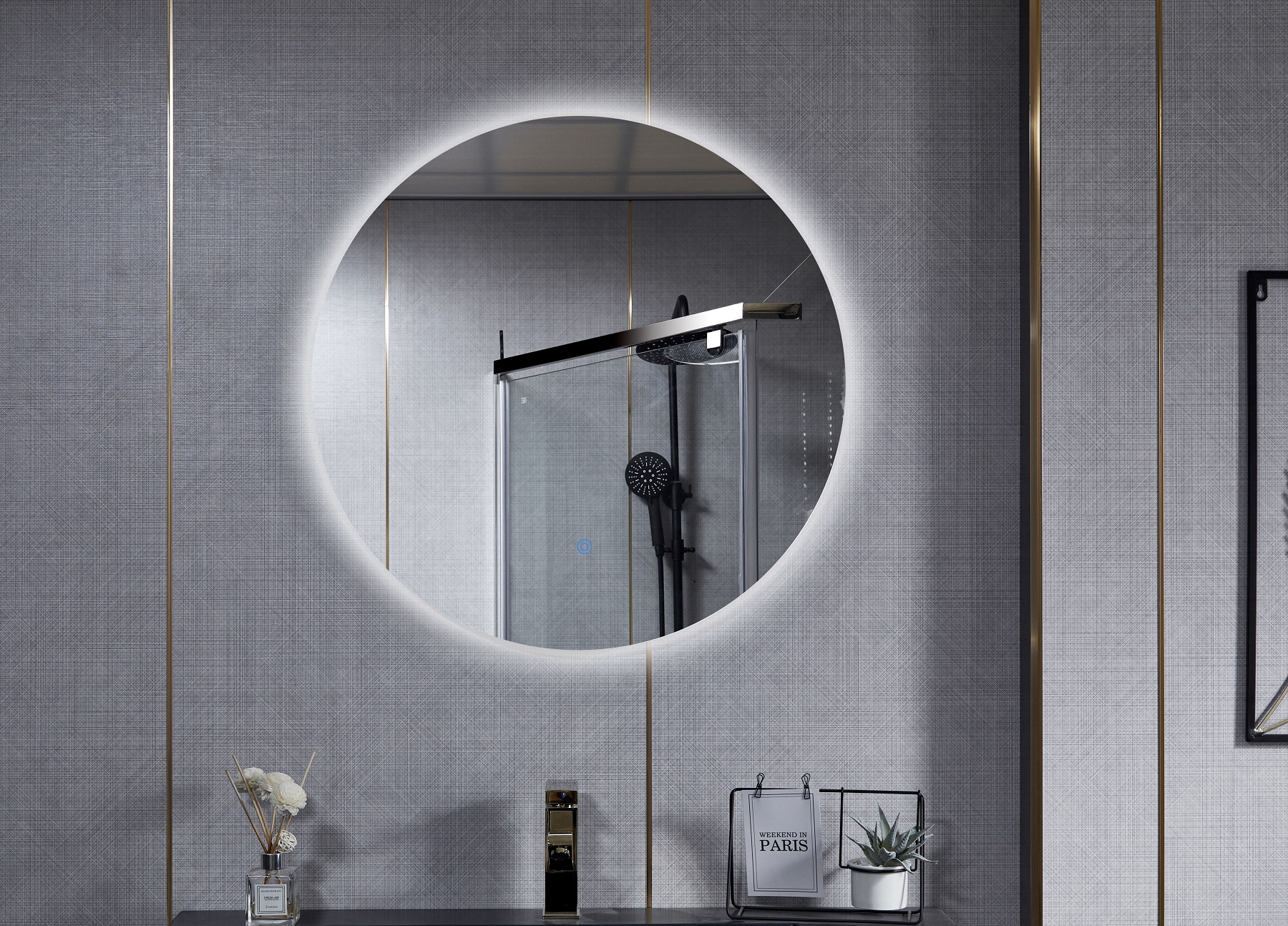 Зеркало Roxen Brimen с эффектом "парящего" зеркала - стильная круглая модель с LED-подсветкой зеркала и сенсорным выключателем. В отличие от аналогичных моделей, в зеркалах Roxen используется светодиодная лента LED Stripe - 120 диодов на 1 метр, которая обеспечивает мягкое равномерное свечение по всему периметру изделия и позволяет использовать его не только как яркий интерьерный элемент, но и как дополнительный источник освещения комнаты.