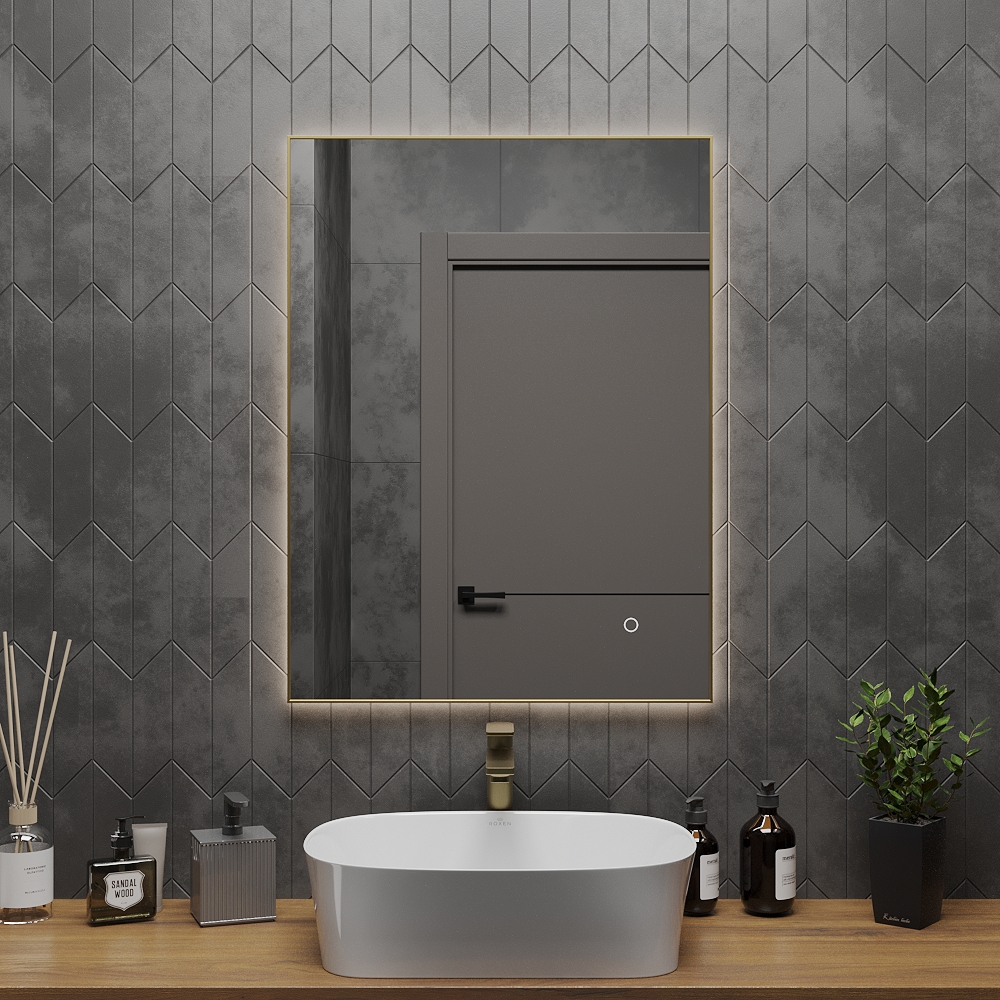 Зеркало Roxen Frida - модель в тонкой металлической раме в цвете брашированное золото, с интерьерной LED-подсветкой на 3 цвета свечения. Сенсорная кнопка SmartTouch срабатывает при легком касании, имеет возможность регулировки яркости свечения (Dimmer). Модель имеет 3 цвета свечения: холодный, теплый и нейтральный, переключается коротким нажатием на сенсор. Благодаря удобному расположению кнопки включения и продуманной системе креплений вы можете расположить зеркало горизонтально либо вертикально и создать свой неповторимый интерьер.
