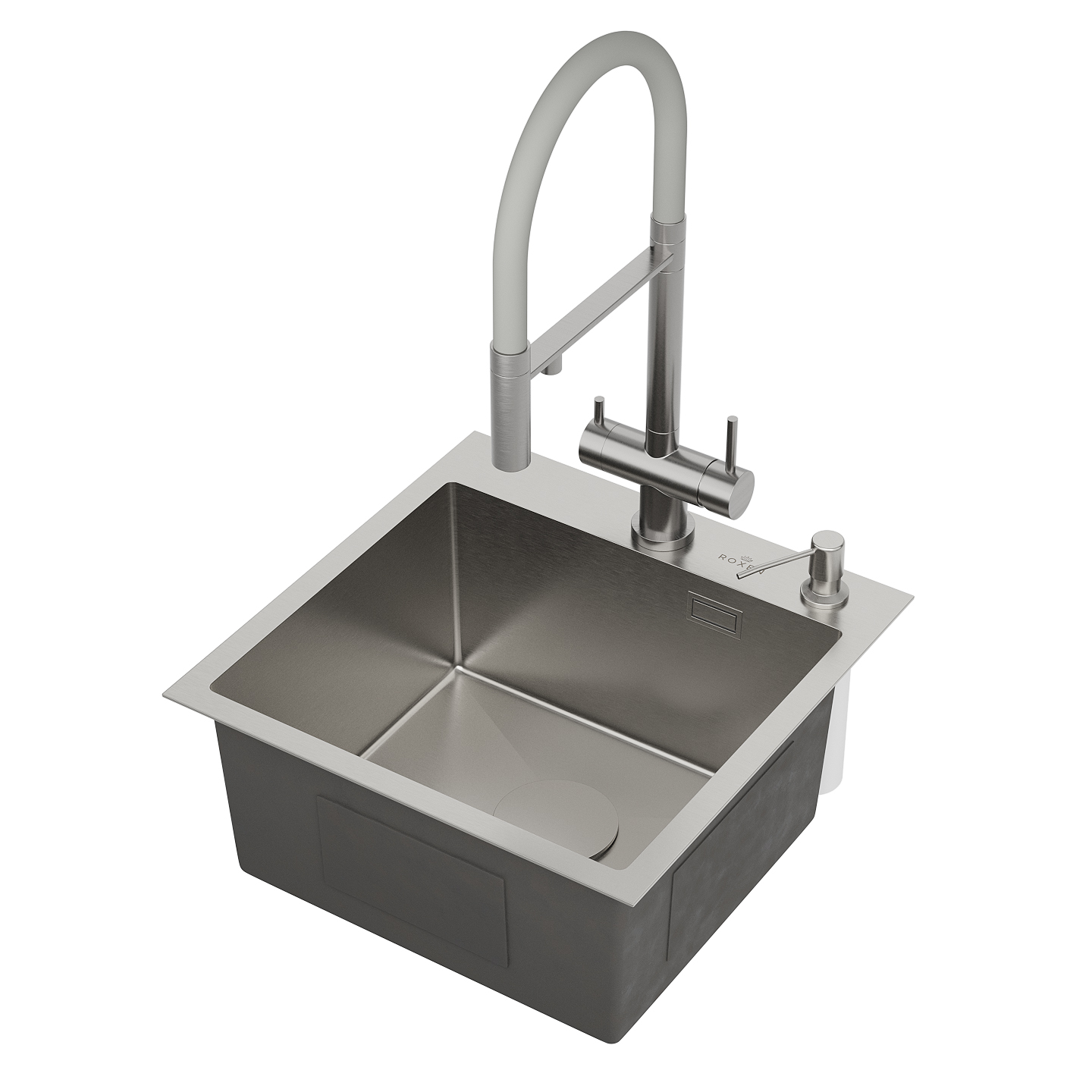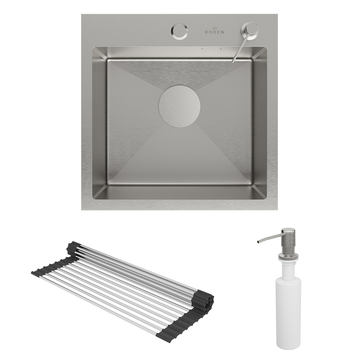 Кухонная мойка Roxen Simple 45х45 с ролл-матом и дозатором в комплекте. Удобная модель с глубокой чашей и широким отверстием слива, сочетает в себе стильный современный дизайн и отличные эксплуатационные характеристики. Мойка изготовлена из аустенитной низкоуглеродистой стали марки AISI 304, которая обладает устойчивостью к коррозии, окислению и перепаду температур. Уникальное покрытие Bruch Tech является защитным слоем, устойчивым к истиранию, появлению царапин и механических повреждений. Отличные шумопоглощающие характеристики мойки обеспечиваются шумоподавляющим составом Silent Protection и шумопоглощающими пластинами Soft Silence, которые располагаются по всей чаше мойки.