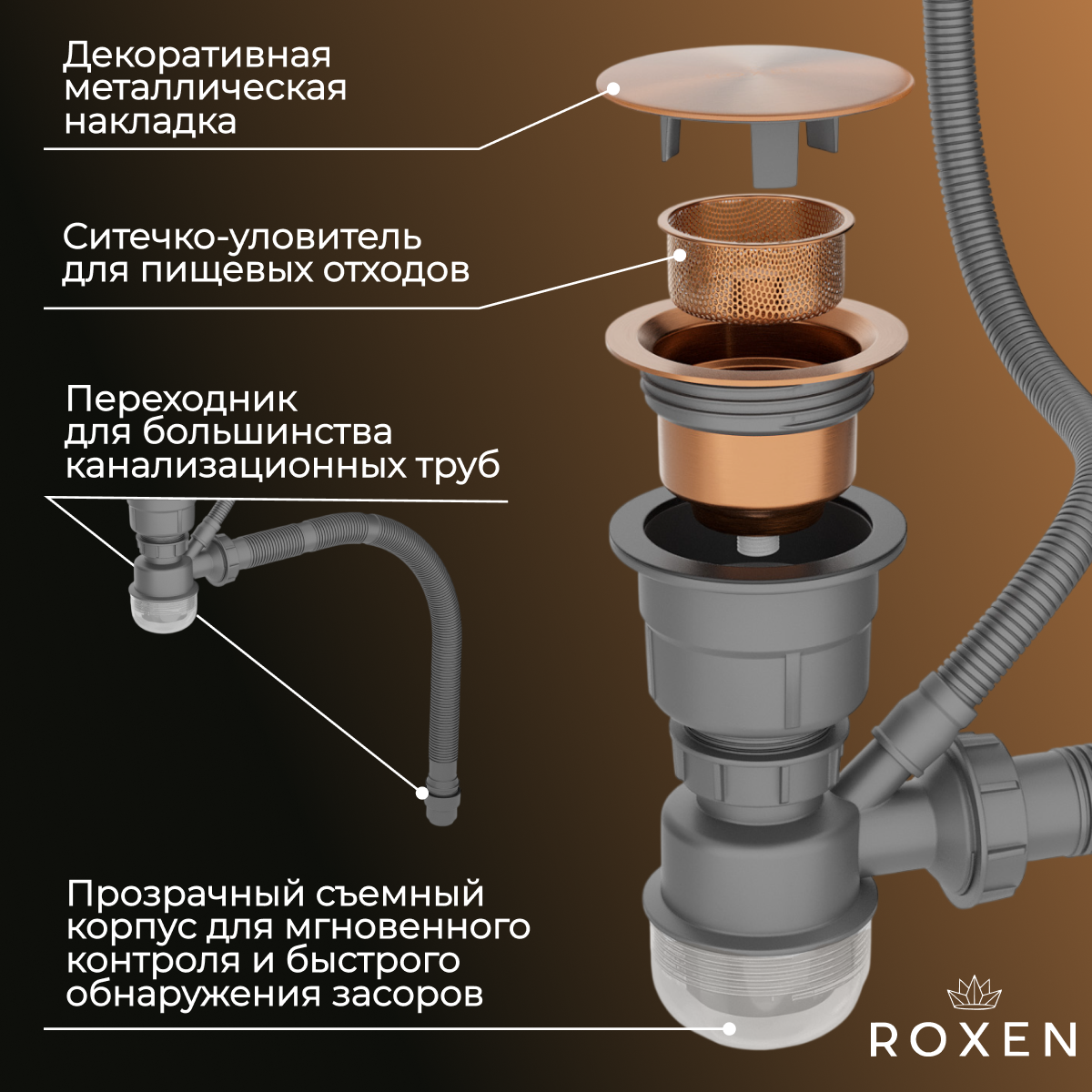 Кухонная мойка Roxen Simple 60 PVD бронза (текстурное покрытие)