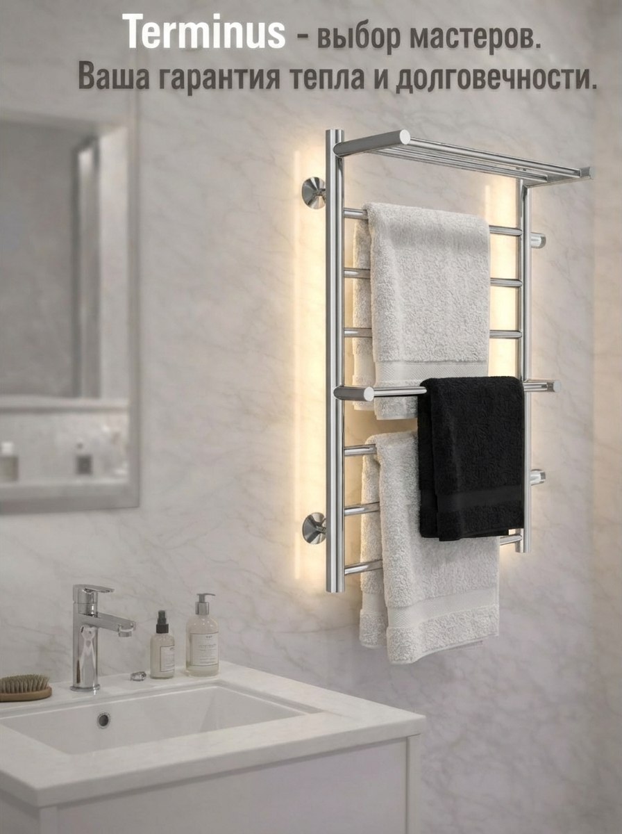 Полотенцесушитель TERMINUS (АНКОНА) АВРОРА с 2-мя полками боковое подключение