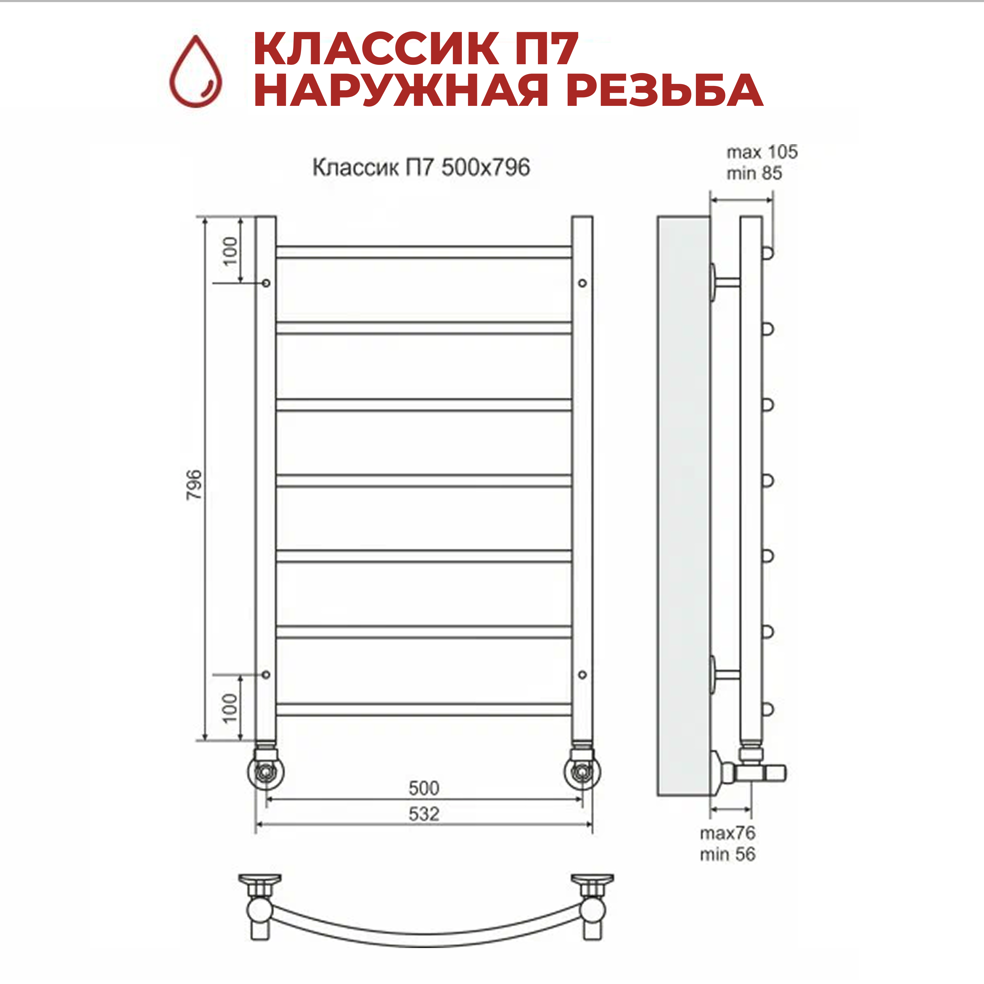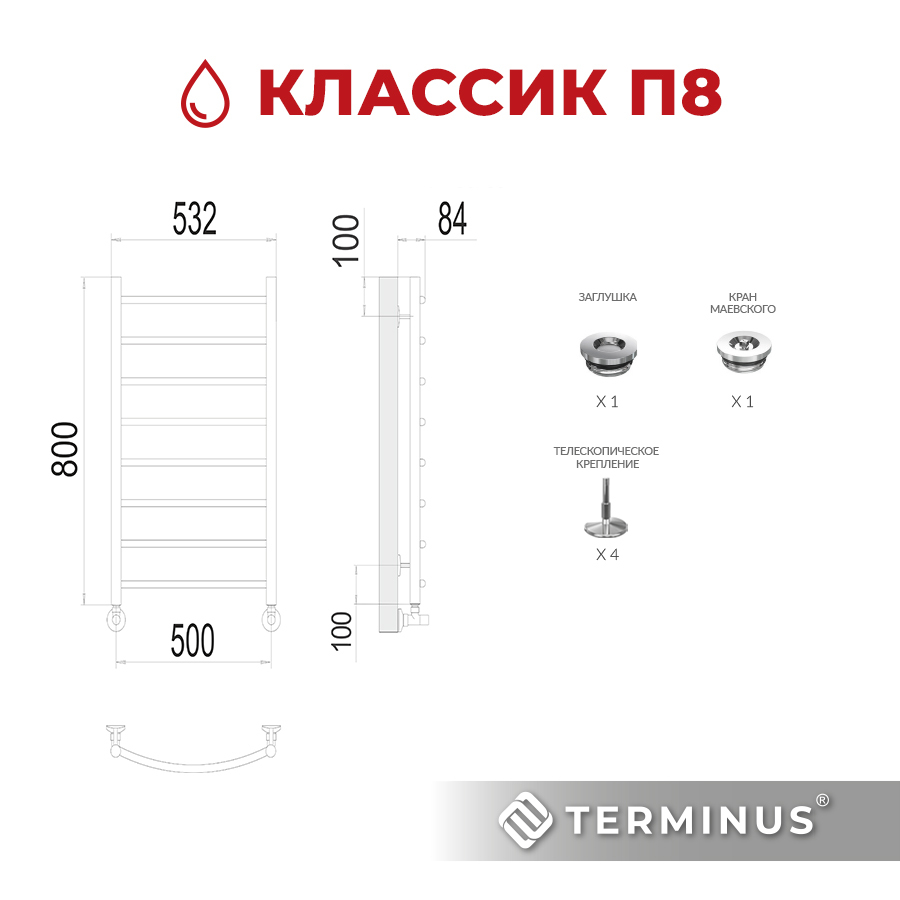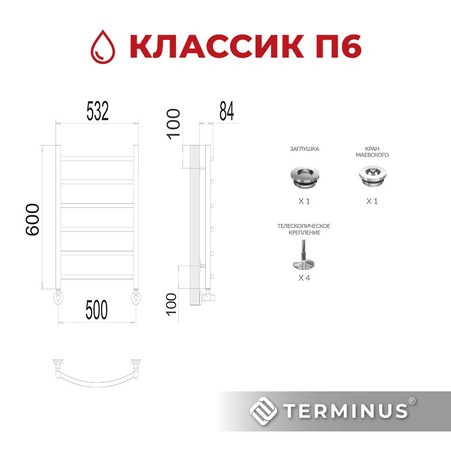 Полотенцесушитель TERMINUS КЛАССИК нижнее подключение