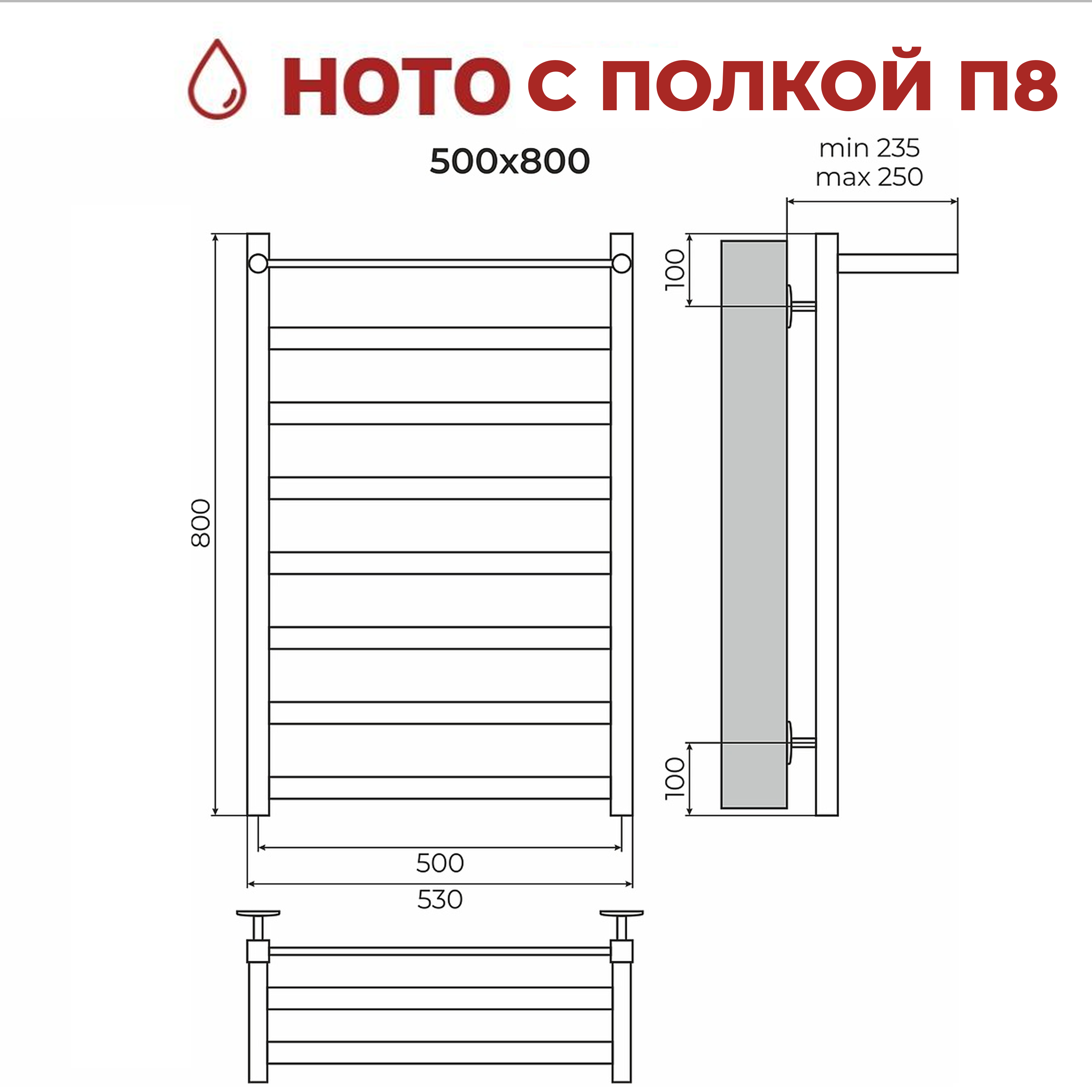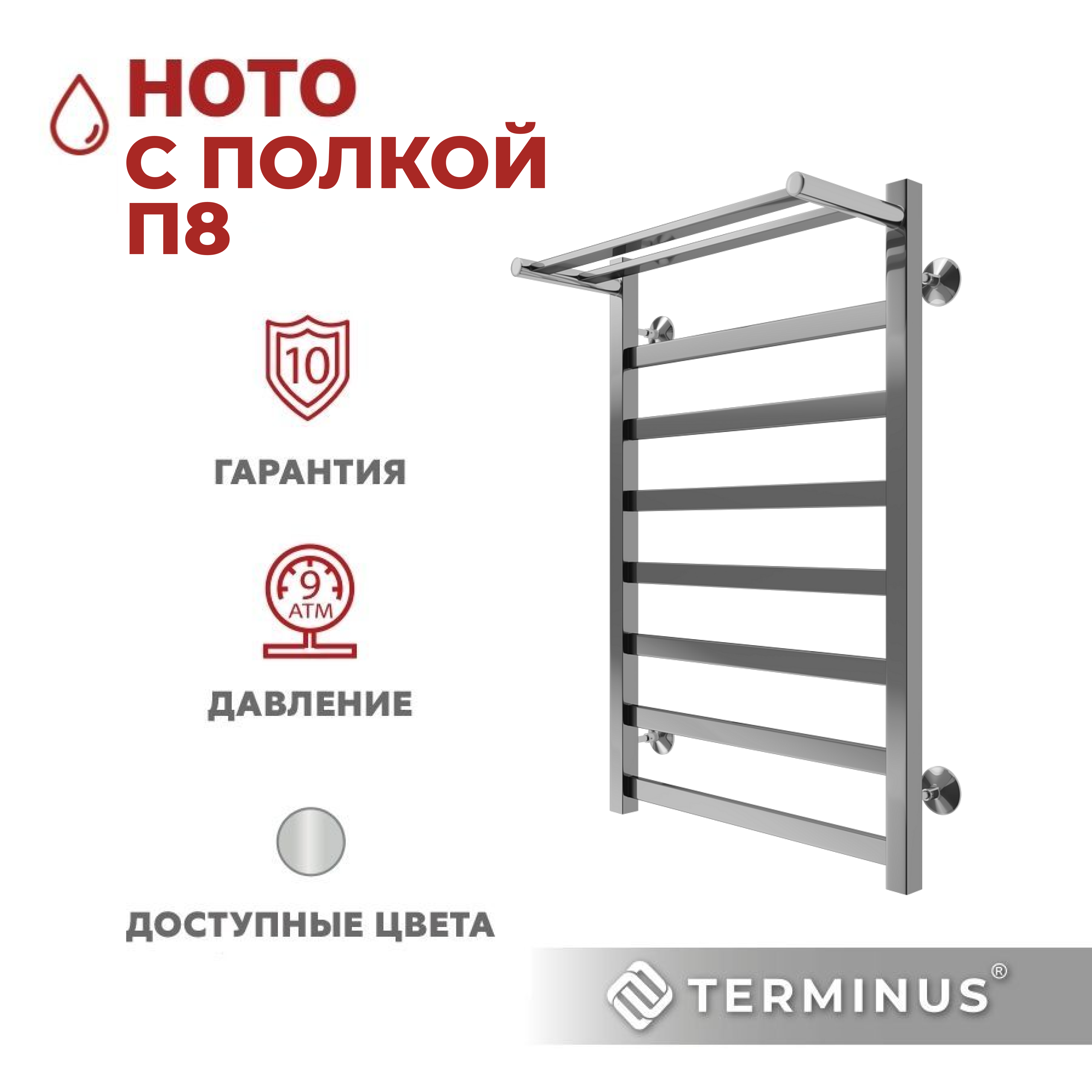 Полотенцесушитель TERMINUS НОТО с полкой нижнее подключение