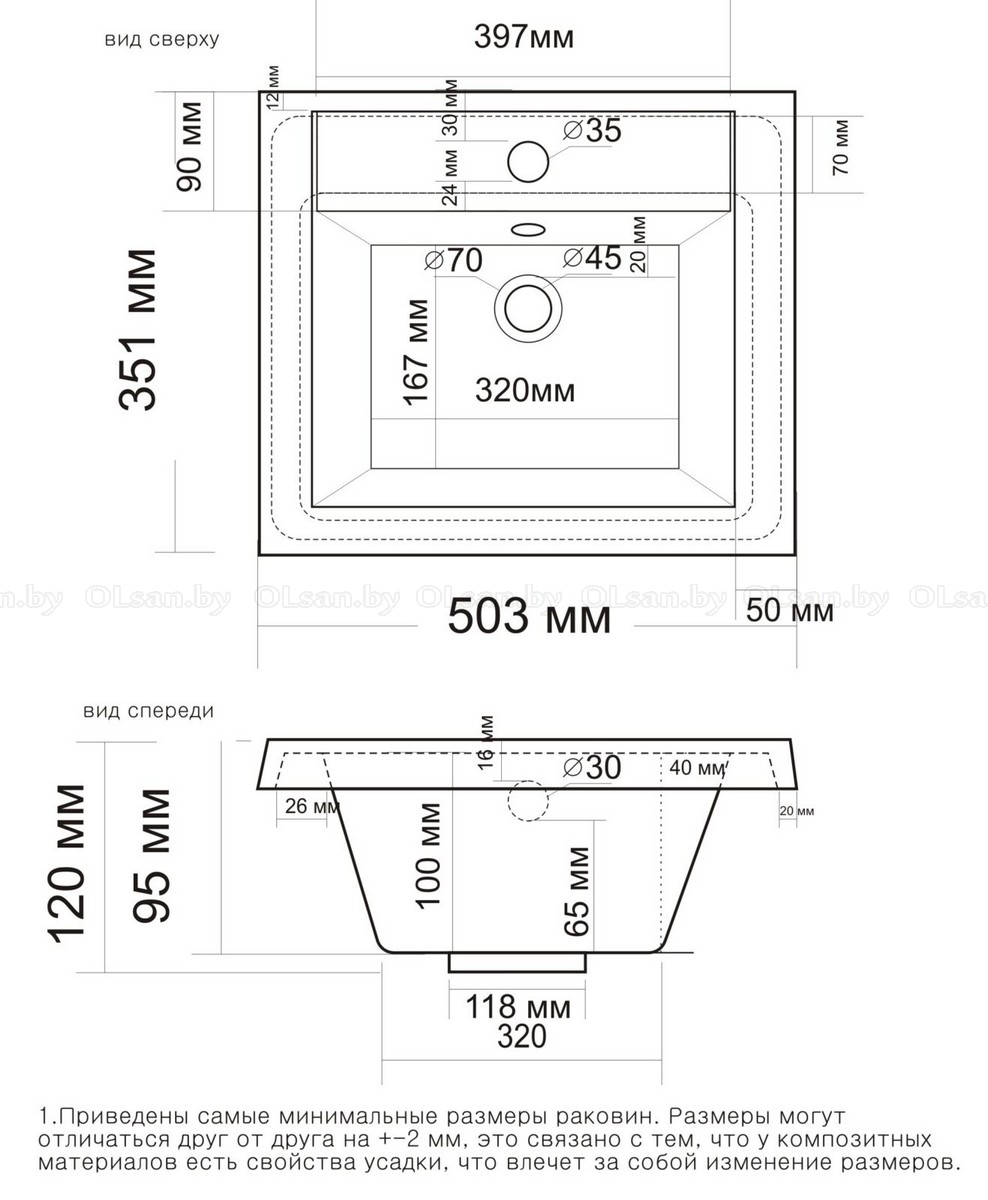 Монтаж на мебель или на столешницу. Встраиваемая сверху. Материал: искусственный мрамор. Для сифона диаметром: 3,2 см. Донный клапан необходимо приобрести отдельно. Слив-перелив в комплекте. Имеет 1 готовое отверстие под смеситель. Оснащение: арматура для слива-перелива.