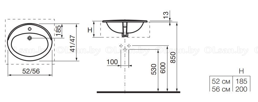 Раковина ROCA ADORA встраиваемая сверху 56х47, 7327203000