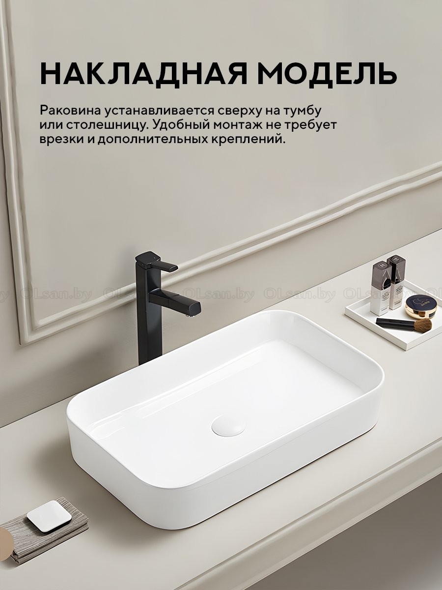 Умывальник накладной Amore di Mare BELLA 60410-RR прост в установке — устанавливается сверху на тумбу или столешницу и не требует дополнительных крепежных элементов, что облегчает монтаж.