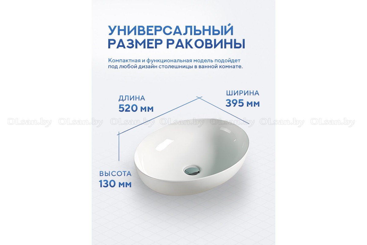 Умывальник накладной Amore di Mare VIVARO 52313-OL прост в установке — устанавливается сверху на тумбу или столешницу и не требует дополнительных крепежных элементов, что облегчает монтаж.