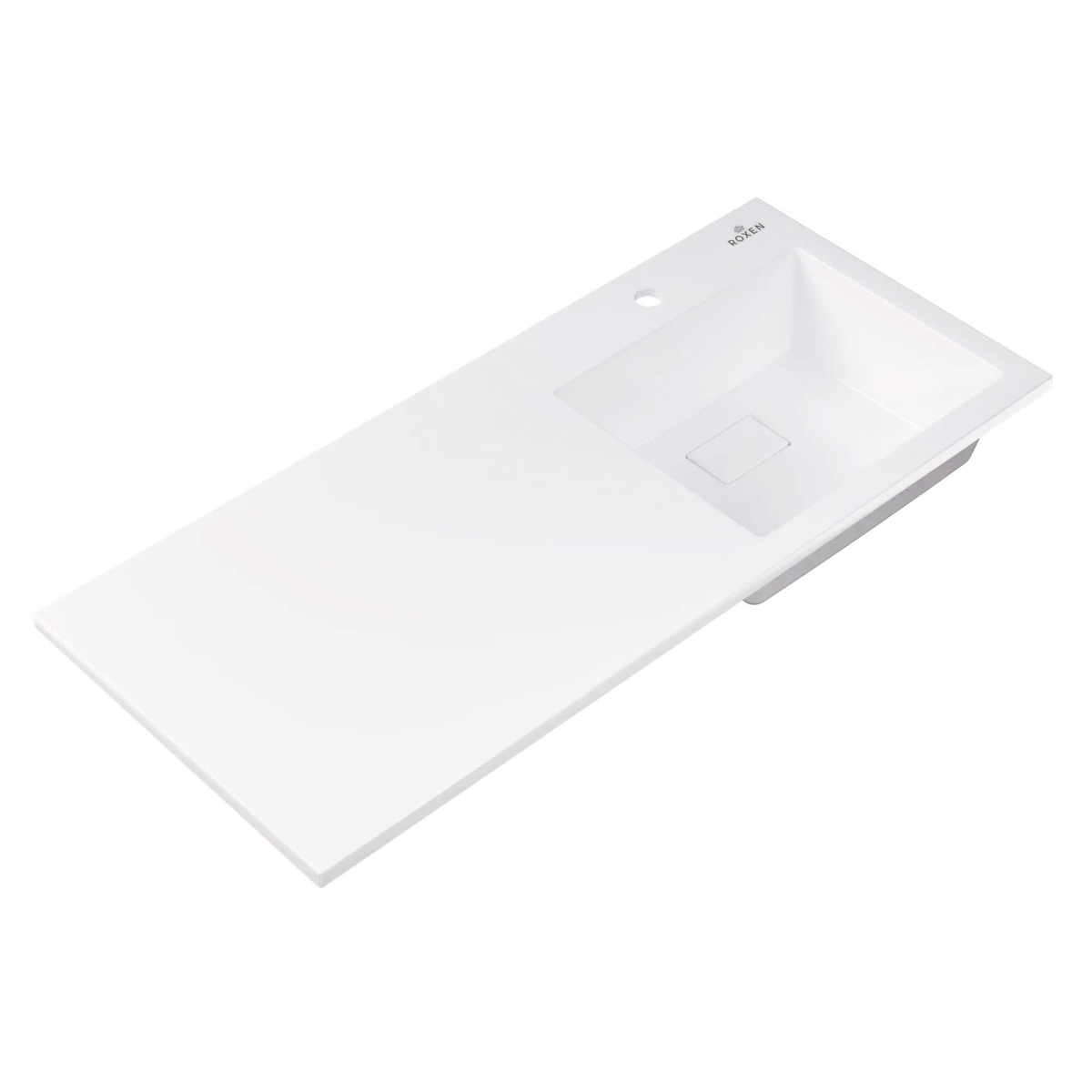 Умывальник Roxen Faber 110L 30010110L-W — функциональная прямоугольная модель с увеличенными габаритами, предназначенная для установки на тумбу или стиральную машину. Особенностью данной модели является правостороннее расположение чаши, что позволяет рационально организовать пространство и обеспечить удобство использования. Изделие выполнено из прочного искусственного камня, устойчивого к влаге, перепадам температур и механическим нагрузкам. Материал сохраняет идеально белую поверхность без желтизны и пористости.