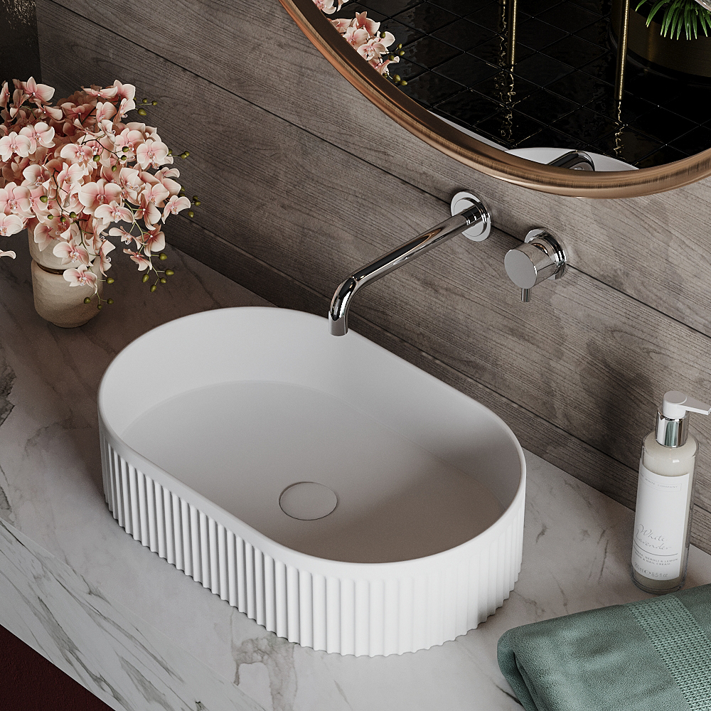Умывальник Roxen Royal Oval M 570170-M - модель в белом матовом цвете с рифленым рисунком по лицевой стороне чаши, для установки на столешницу. Умывальник изготовлен из санитарного фарфора PorCelain, который обеспечивает прочность изделия, абсолютную белизну и гладкую поверхность. Благодаря уникальному процессу шлифовки (машинная + ручная) достигается отсутствие пор и углублений. Специальное антибактериальное покрытие Ultra Glide обеспечивает легкий уход, гигиеничность и первоначальный внешний вид на долгие годы. Оптимальная высота чаши удобна в использовании и не позволяет каплям воды попадать на столешницу.