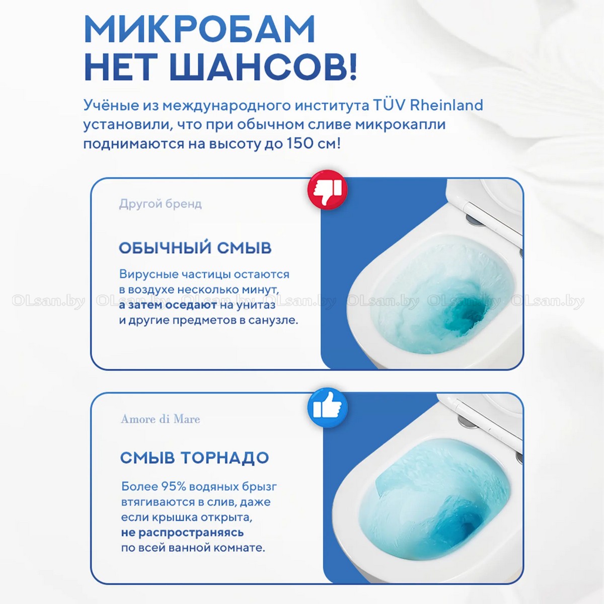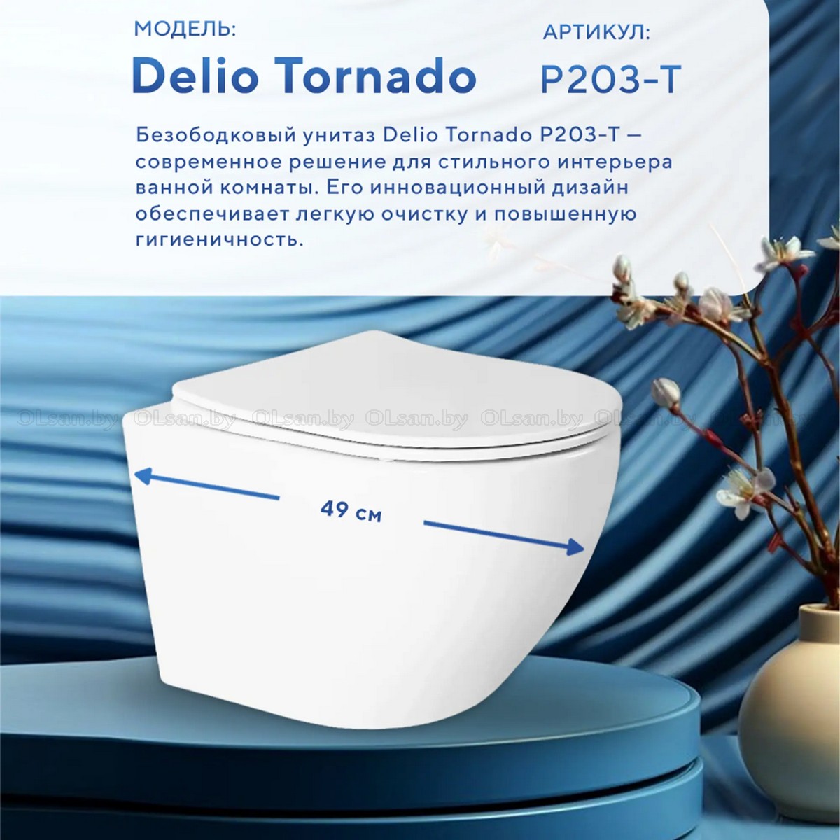 Безободковый подвесной унитаз Amore di Mare Delio Tornado с сиденьем Duroplast soft-close P203-T