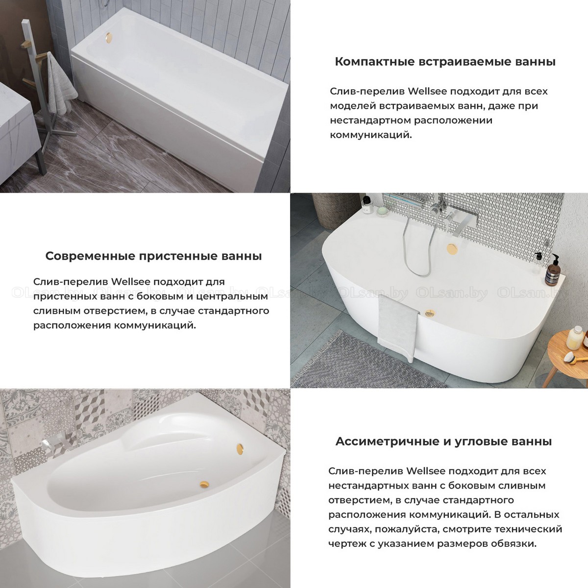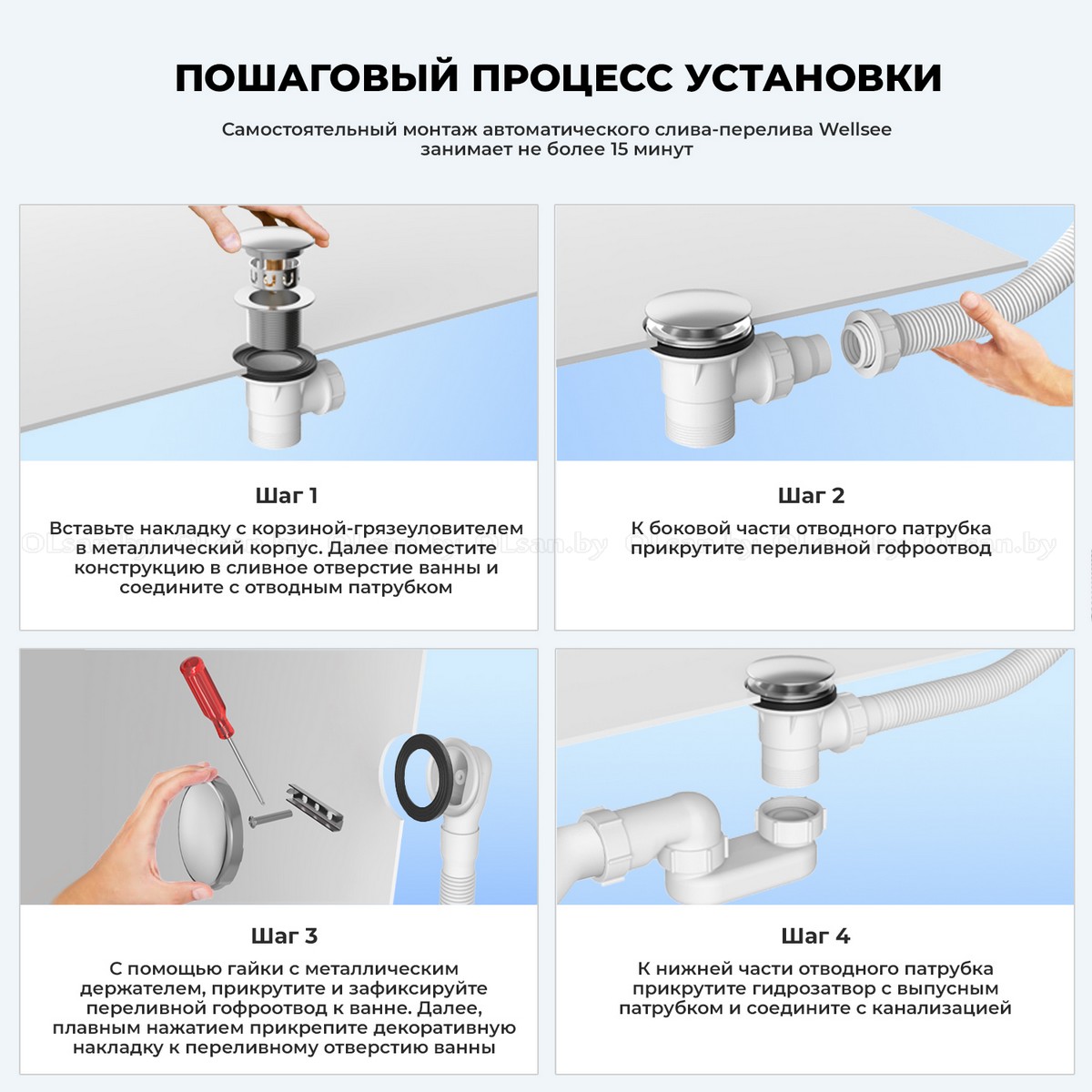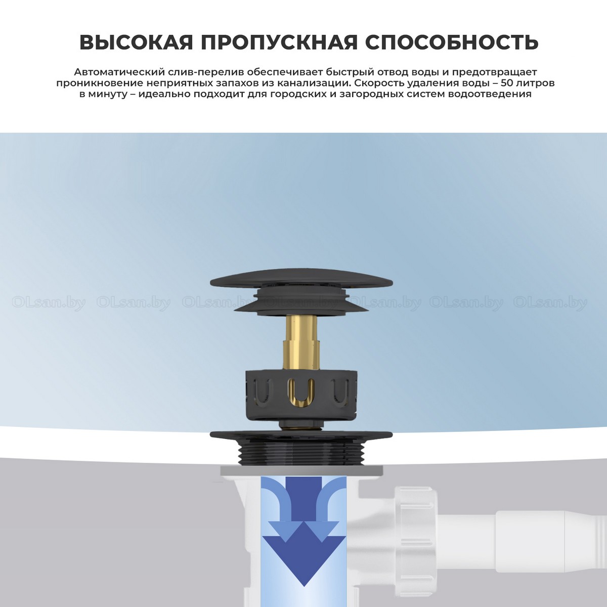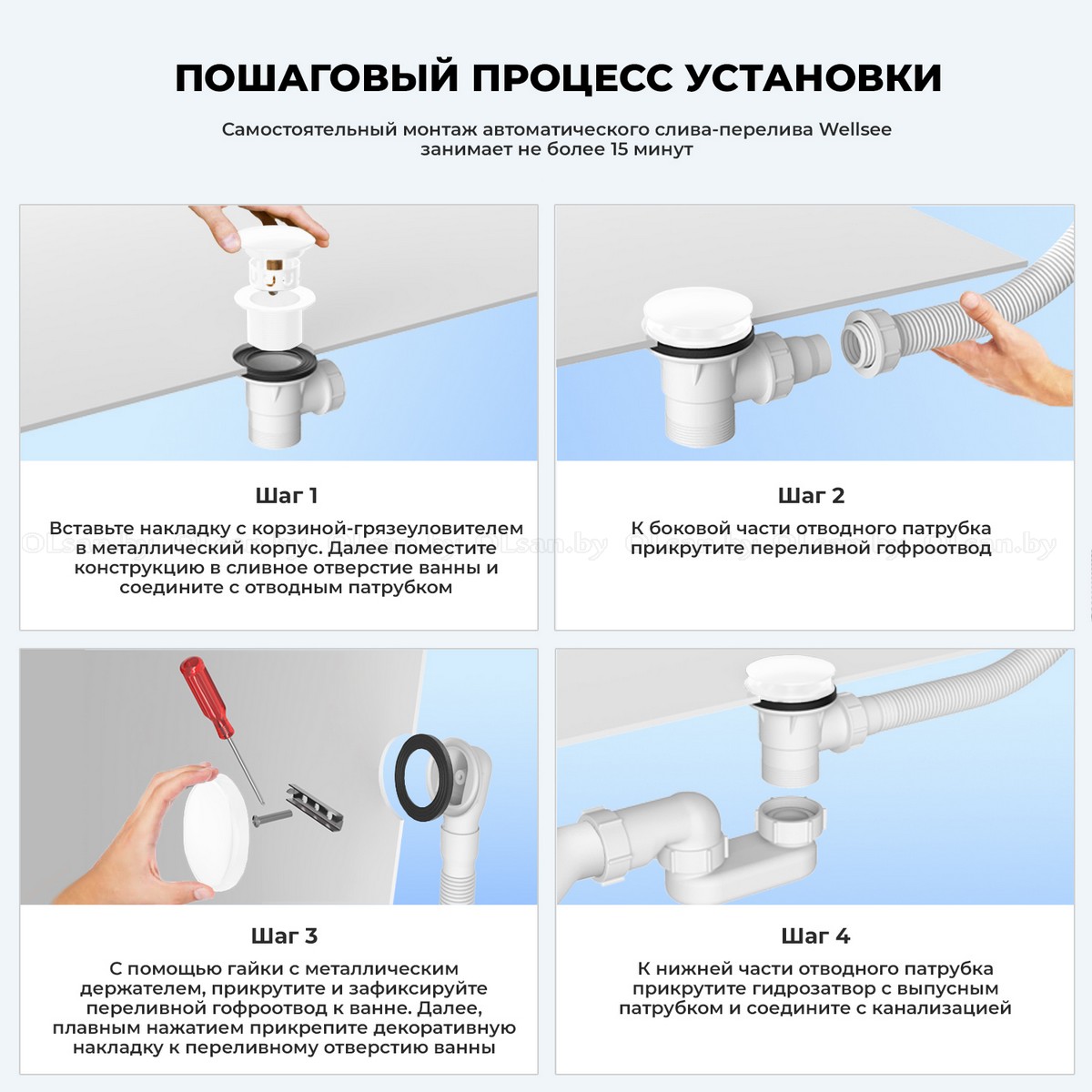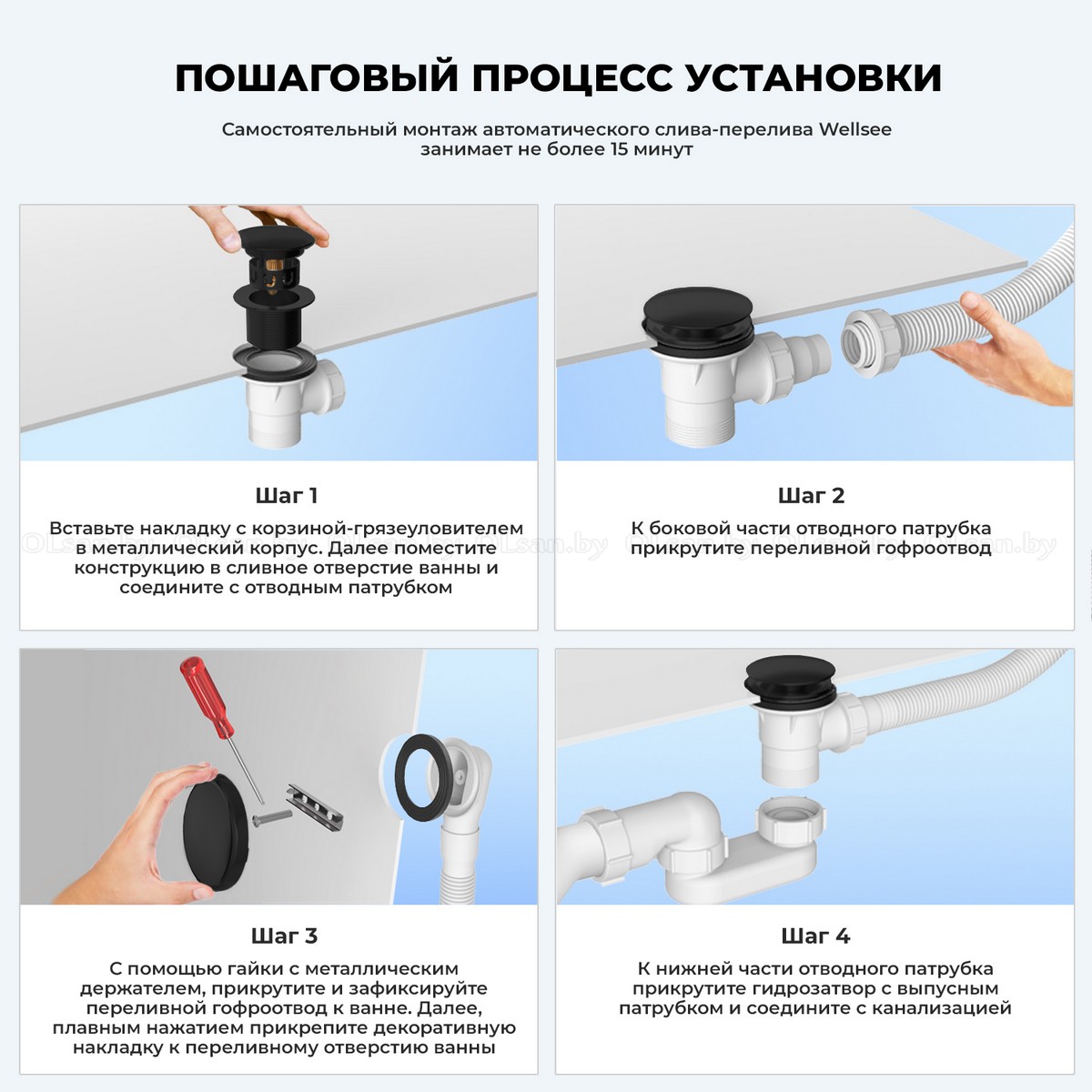 Автоматический слив-перелив Wellsee Useful Extras с донным клапаном click-clack (хром, белый матовый, белый глянец, черный, золото)
