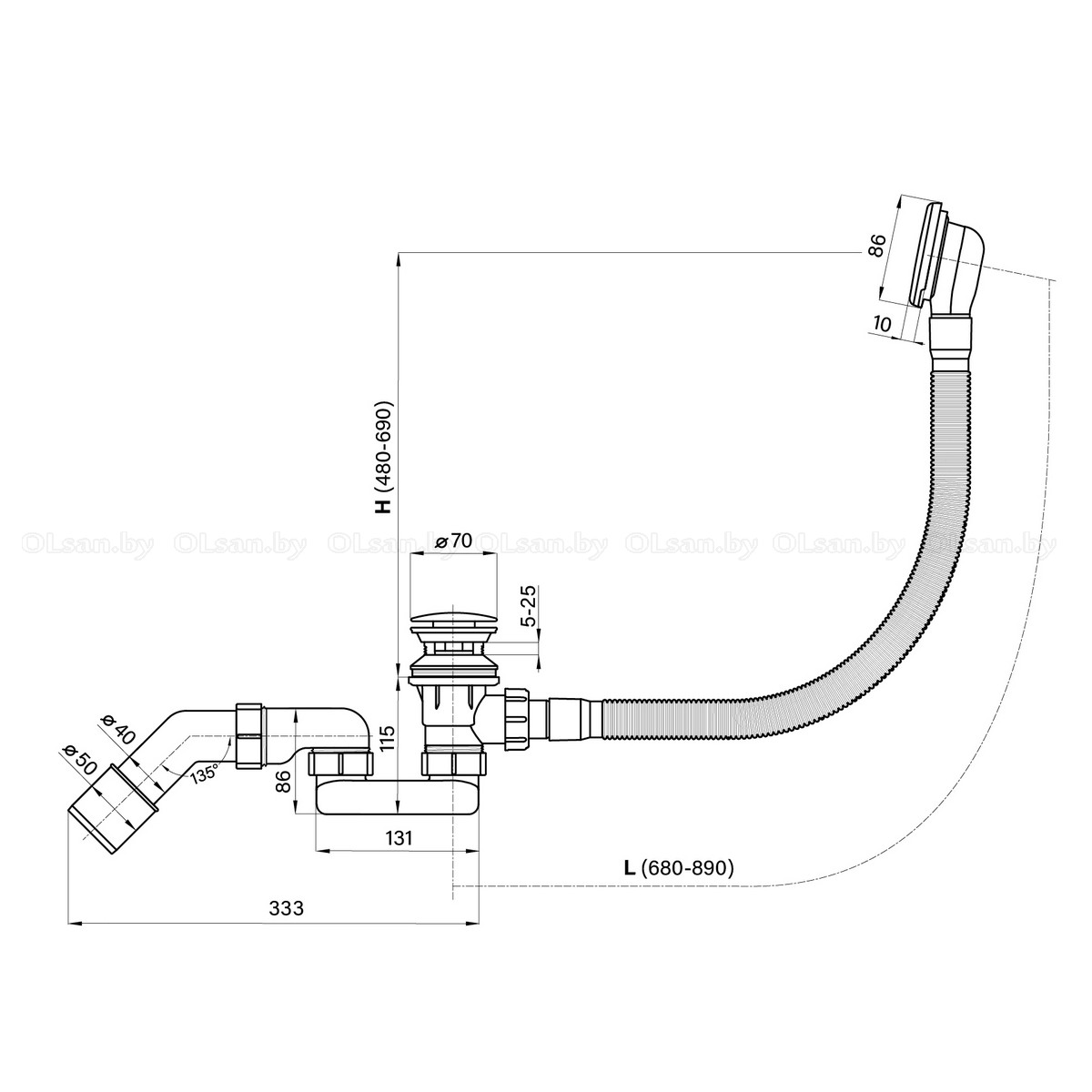Автоматический слив-перелив Useful Extras с донным клапаном click-clack и съемной накладкой на перелив (диаметр подключения к канализационной трубе 40/50 мм; диаметр сливного отверстия 40 мм; диаметр переливного отверстия 50 мм; длина шланга системы перелива 58 мм; пропускная способность 50 л/мин; с возможностью верхней прочистки и регулировкой по высоте/длине, с функцией гидрозатвора). Компактный слив-перелив для ванны изготовлен из полипропилена повышенной прочности и высокой термической устойчивостью, неуязвим к воздействию агрессивных химических средств. Внутренние стенки конструкции имеют специальное антибактериальное покрытие Protect’IN, препятствующее скоплению грязи и оседанию водопроводных примесей, что существенно снижает вероятность образования засоров. Накладка на перелив и крышка донного клапана click-clack выполнены из латуни, отличаются высокой износостойкостью и не подвержены коррозии. Высокотехнологичный метод вакуумного напыления PVD, используемый при окрашивании латунных элементов, создает сверхзащитное однородное покрытие UltraChrome с легкой очисткой от известковых отложений, устойчивое к царапинам и выцветанию.