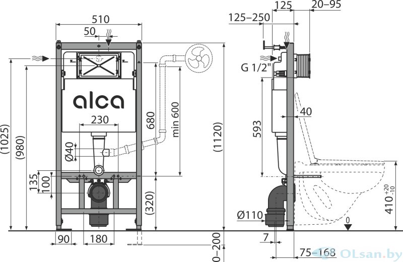 Подвод воды к задней стенке бачка или сверху бачка осуществляется с помощью монтажных отверстий G1/2 ".