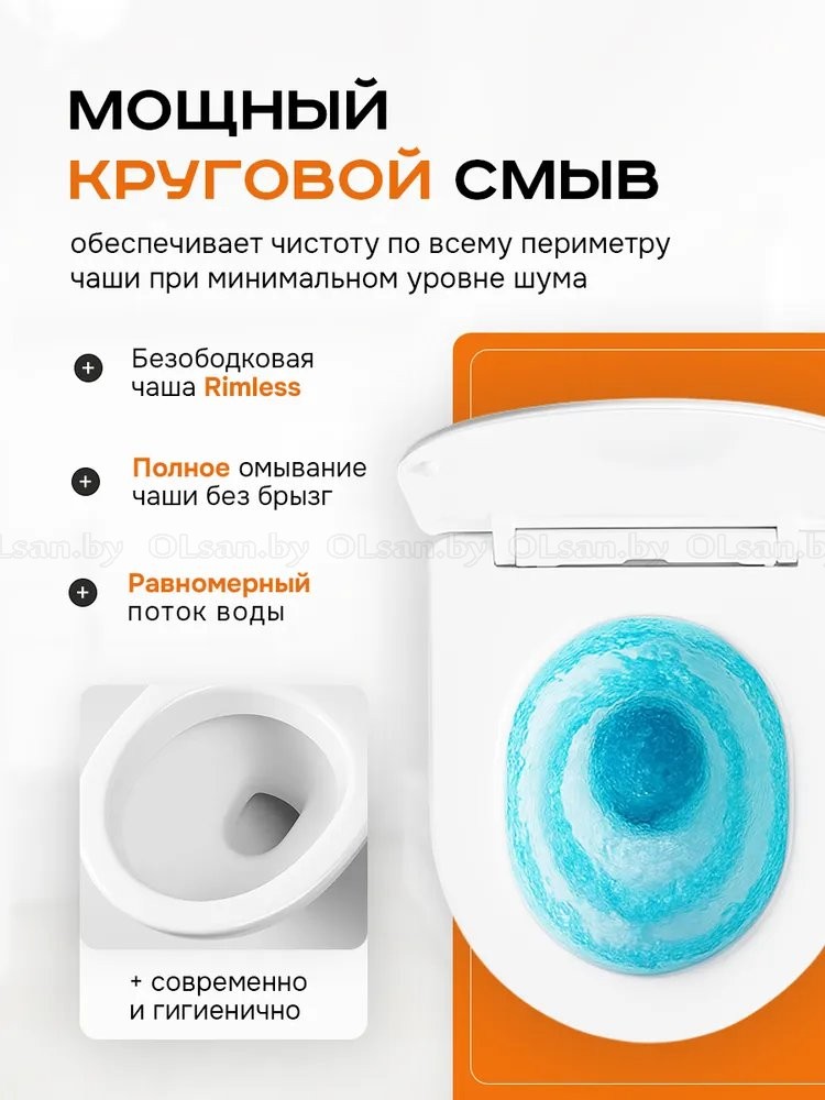 Двойной смыв, независимо регулируемый, с гигиеническим резервом.