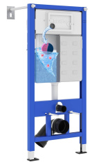 Двойной смыв, механический принцип действия. Совместимость со всеми скрытыми системами инсталляции Roxen. Материал: пластик HDPE. Обрамление кнопок - хром.