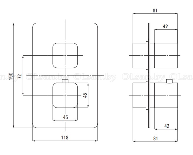 Верхняя часть термостатического смесителя. Встраиваемая часть в комплект не входит, приобретается отдельно.